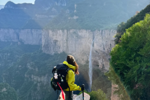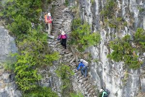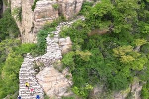 - 早6.00起床洗漱继续出发,10点左右抵达河南清水庄,整装开始徒步。龙水梯村海拔约1千米,在村口石桥右侧上行,奔白云龛方向前行,树林阴翳,鸣声上下,过白云龛攀爬鸡冠梯是该路线最险峻的一段,垂直高度约300米,坡度近70度,手脚并用攀爬至峰顶,群峰扑面而来,庄严而震撼。前行至十字岭十字路口,左行35分钟到达十字岭主峰海拔1778 米,为南太行最高峰,随着山势不断拔高,平缓的羊肠小道消失了,出现在眼前的是用不规则的石板铺成的石阶。这就是龙水梯了。我于前年曾经走过龙水梯,这次,算是故地重游了。龙水梯也是南太行一条经典的徒步线路。时值节假日,前来龙水梯徒步的其他户外的驴友也很多,一路上到处都是,颇为热闹。下午经过十字岭横切,进入锡崖沟村,安排住宿。若时间足够可自行前往锡崖沟挂壁公路,原路折返。