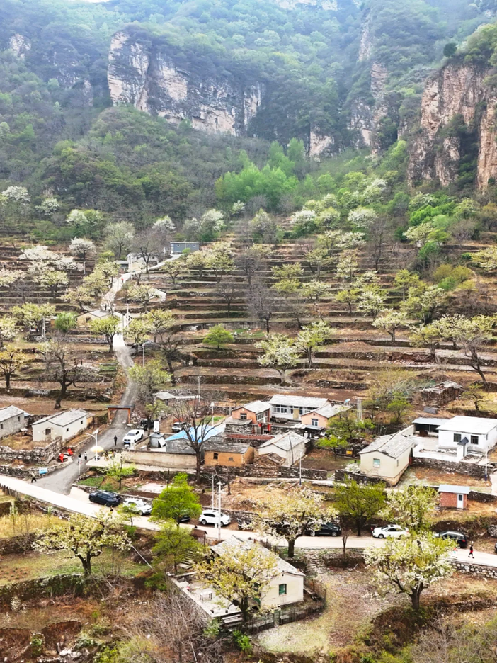 - 10:00|抵达108国道旁上石堡村徒步到大滩村观赏梯田梨花,大滩是一个坐落于大山深处的小村,这里远离喧嚣、空气清新,梯田上种满梨树。走过泥墙红瓦的平房,像一场旧时光的巡礼。屋顶的炊烟、公鸡的啼鸣、偶有徐徐传出来的京剧声,时间仿佛在此打了个结。每年四月中下旬,这里便会成为梨花花海。春风拂过,顺着梯田望去,枝桠层层摆动,犹如花海掀起波浪。耀眼阳光下,洁白的花瓣显得更加透亮,恰似雪从天降。